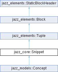 A Snippet is a Tuple with items and some attributes. The items are sources and compiled onnx code. The attributes identify it as a Snippet and manage state ().